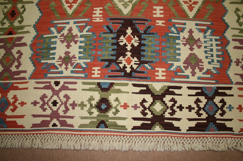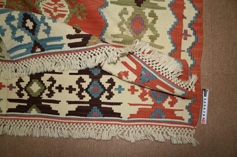 スタンダードキリムより、ワンランク上のカイセリキリム。カイセリ地方で織られているキリムです。上質のウールで織られているため、手触りもやわらか。細かなモチーフがぎっしり詰め込まれ、繊細に織られていて、古いキリムの色合いに合わせたパステル調の色合いが特徴です。機械織りとは異なり、暖かみが伝わるハンドメイド。このタイプのものは、なかなか数が少なく、品質・価格・品揃え共に、日本国内屈指であると自負しています。