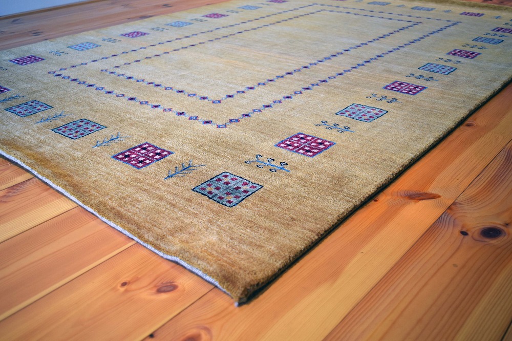 [hal26]トルコギャッベカーペットです。織りはとても細かく、目が詰まっており、しっかりとしています。1cmあたりおよそ16個の結び目があります。リーズナブルなプライスでご満足いただけると思います。