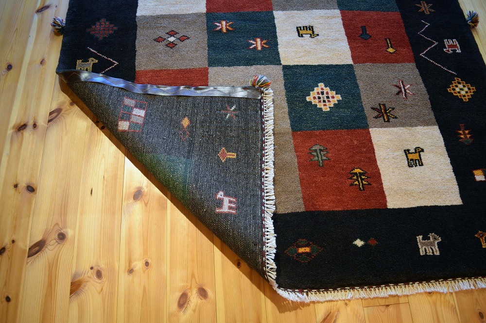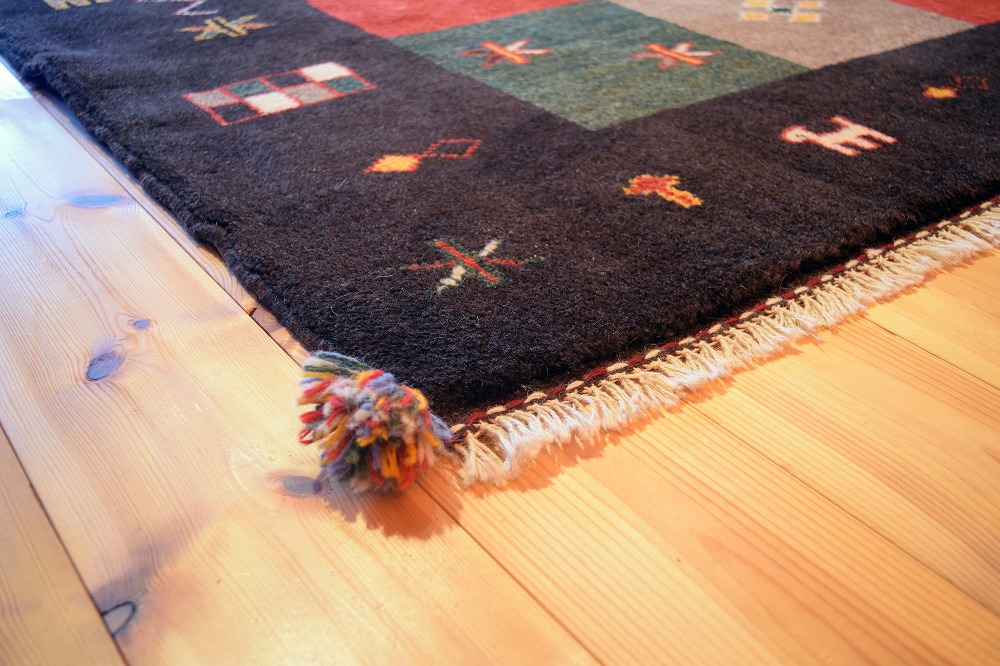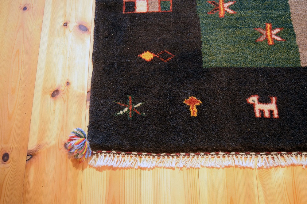ギャッベ絨毯とは、イランの遊牧民の女性たちが織るウール100%の手織りの草木染絨毯です。ギャッベ(Gabbeh)は2センチ以上の長い毛足を持つ分厚い絨毯のことを指します。100%天然素材ですので、べとつくことなくサラッとし、1年を通して使っていただけます。こちらのサイズは、ベットの脇や、ソファーの前など、幅広く使っていただけます。