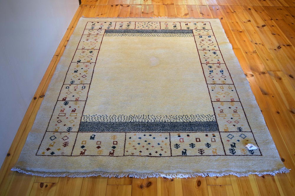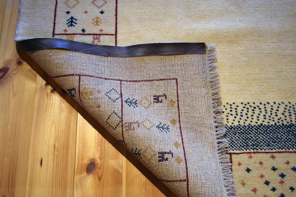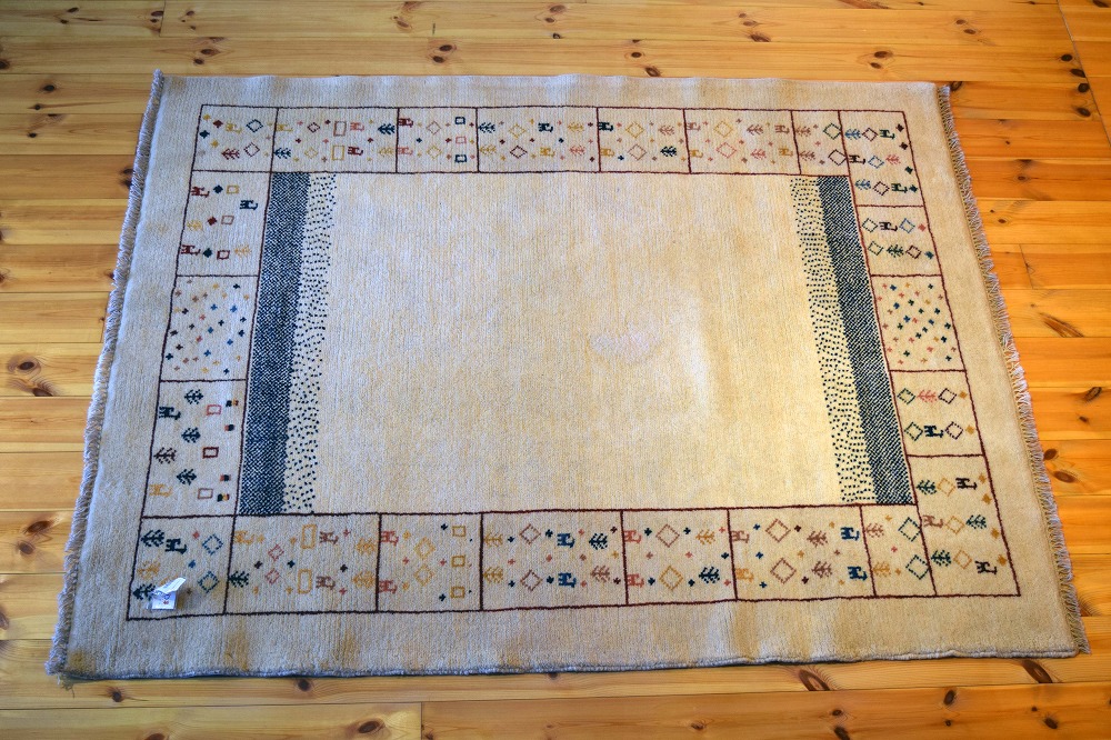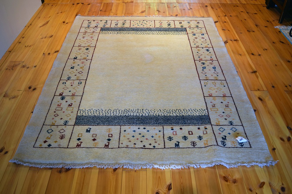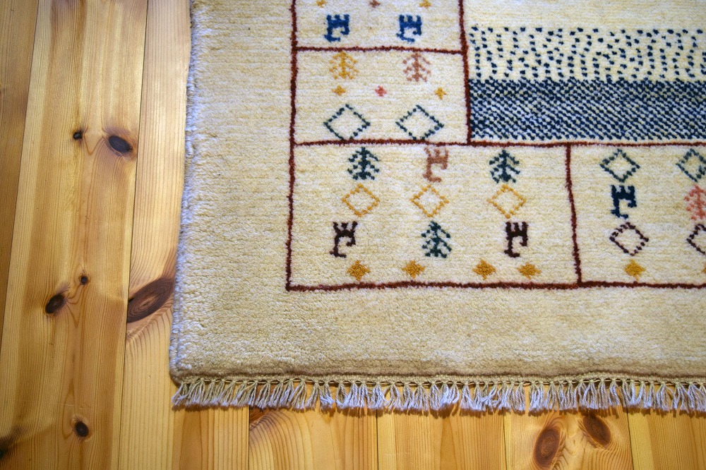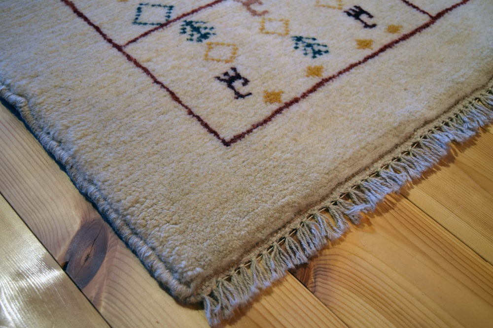 ギャッベ絨毯とは、イランの遊牧民の女性たちが織るウール100%の手織りの草木染絨毯です。ギャッベ(Gabbeh)は2センチ以上の長い毛足を持つ分厚い絨毯のことを指します。100%天然素材ですので、べとつくことなくサラッとし、1年を通して使っていただけます。こちらのサイズは、ベットの脇や、ソファーの前など、幅広く使っていただけます。