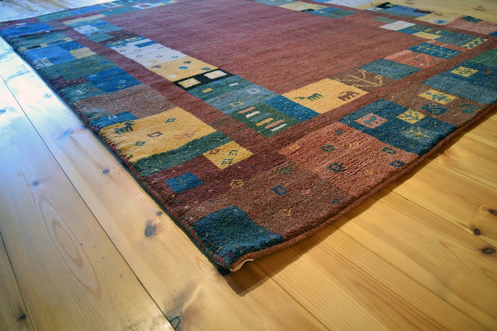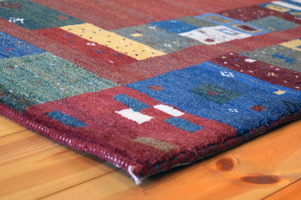 ギャッベ絨毯とは、イランの遊牧民の女性たちが織るウール100%の手織りの草木染絨毯です。ギャッベ(Gabbeh)は2センチ以上の長い毛足を持つ分厚い絨毯のことを指します。100%天然素材ですので、べとつくことなくサラッとし、1年を通して使っていただけます。こちらのサイズは、ベットの脇や、ソファーの前など、幅広く使っていただけます。