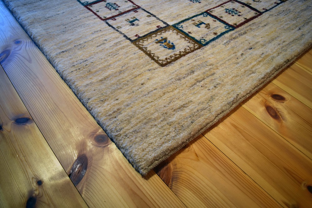 ギャッベ絨毯とは、イランの遊牧民の女性たちが織るウール100%の手織りの草木染絨毯です。ギャッベ(Gabbeh)は2センチ以上の長い毛足を持つ分厚い絨毯のことを指します。100%天然素材ですので、べとつくことなくサラッとし、1年を通して使っていただけます。こちらのサイズは、ベットの脇や、ソファーの前など、幅広く使っていただけます。