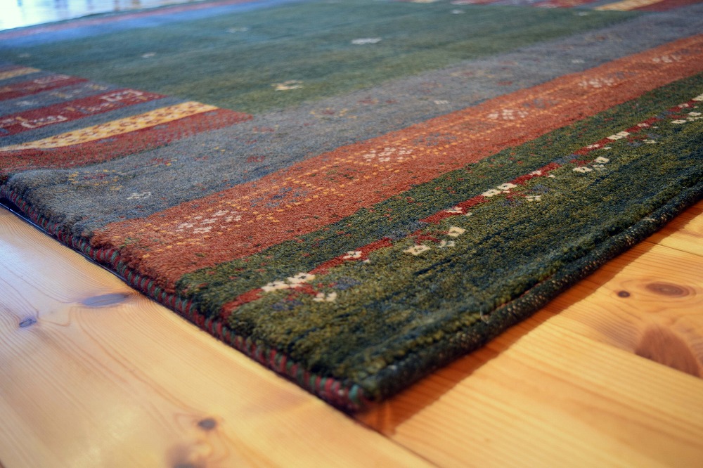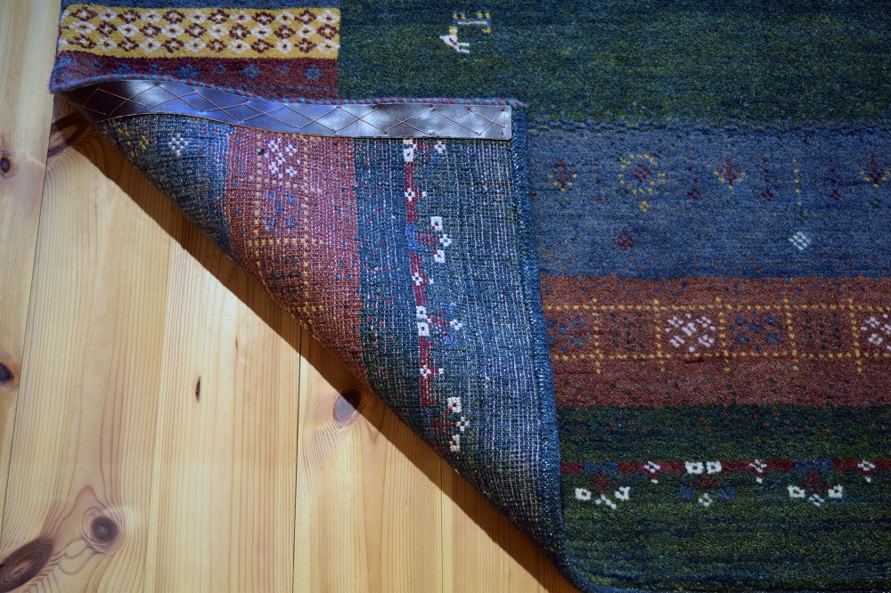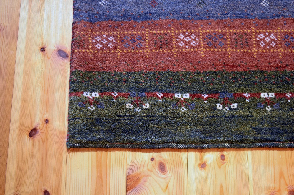 ギャッベ絨毯とは、イランの遊牧民の女性たちが織るウール100%の手織りの草木染絨毯です。ギャッベ(Gabbeh)は2センチ以上の長い毛足を持つ分厚い絨毯のことを指します。100%天然素材ですので、べとつくことなくサラッとし、1年を通して使っていただけます。こちらのサイズは、ベットの脇や、ソファーの前など、幅広く使っていただけます。