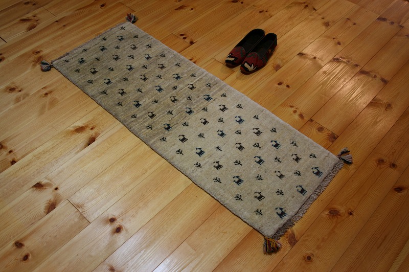 手織り-手紡-草木染め,ギャッベ絨毯とは、イランの遊牧民の女性たちが織るウール100%の手織りの草木染絨毯です。ギャッベ(Gabbeh)は2センチ約の長い毛足を持つ分厚い絨毯のことを指します。100%天然素材ですので、べとつくことなくサラッとし、1年を通して使っていただけます。こちらのサイズは、玄関マットや、ベットの脇や、キッチンマット、ソファーの前など、幅広く使っていただけます。