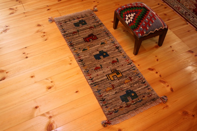 手織り-手紡-草木染め,ギャッベ絨毯とは、イランの遊牧民の女性たちが織るウール100%の手織りの草木染絨毯です。ギャッベ(Gabbeh)は2センチ約の長い毛足を持つ分厚い絨毯のことを指します。100%天然素材ですので、べとつくことなくサラッとし、1年を通して使っていただけます。こちらのサイズは、玄関マットや、ベットの脇や、キッチンマット、ソファーの前など、幅広く使っていただけます。