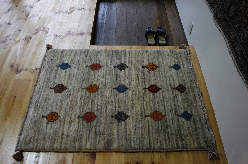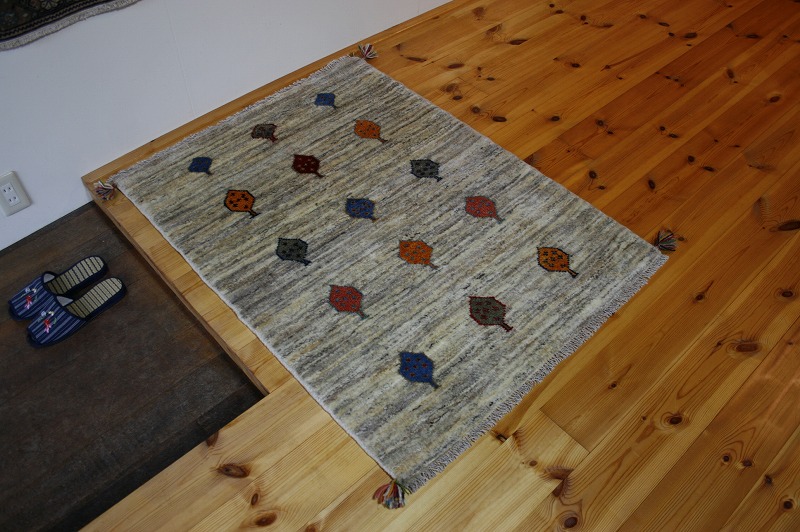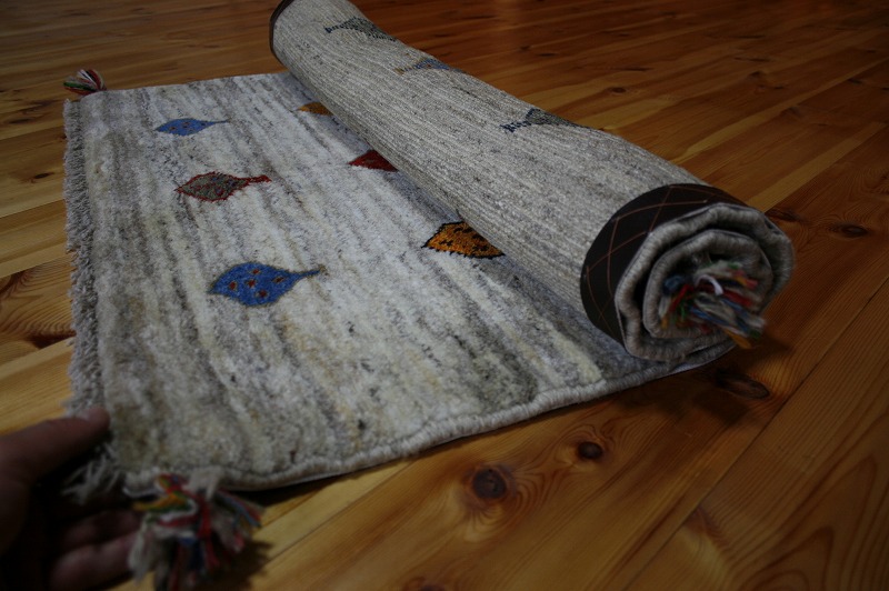 igm137手織り-手紡-草木染め,ギャッベ絨毯とは、イランの遊牧民の女性たちが織るウール100%の手織りの草木染絨毯です。ギャッベ(Gabbeh)は2センチ約の長い毛足を持つ分厚い絨毯のことを指します。100%天然素材ですので、べとつくことなくサラッとし、1年を通して使っていただけます。こちらのサイズは、玄関マットや、ベットの脇や、ソファーの前など、幅広く使っていただけます。
