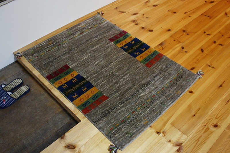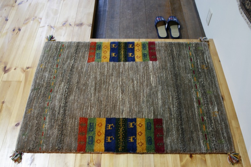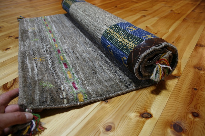 igm143手織り-手紡-草木染め,ギャッベ絨毯とは、イランの遊牧民の女性たちが織るウール100%の手織りの草木染絨毯です。ギャッベ(Gabbeh)は2センチ約の長い毛足を持つ分厚い絨毯のことを指します。100%天然素材ですので、べとつくことなくサラッとし、1年を通して使っていただけます。こちらのサイズは、玄関マットや、ベットの脇や、ソファーの前など、幅広く使っていただけます。