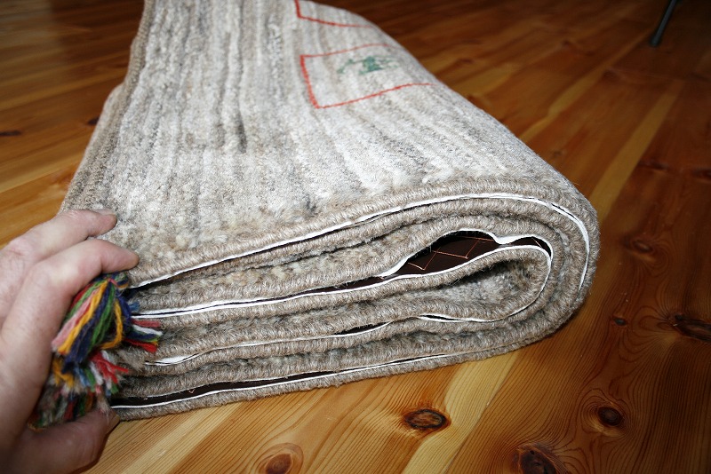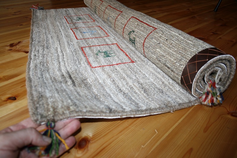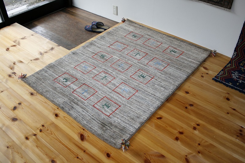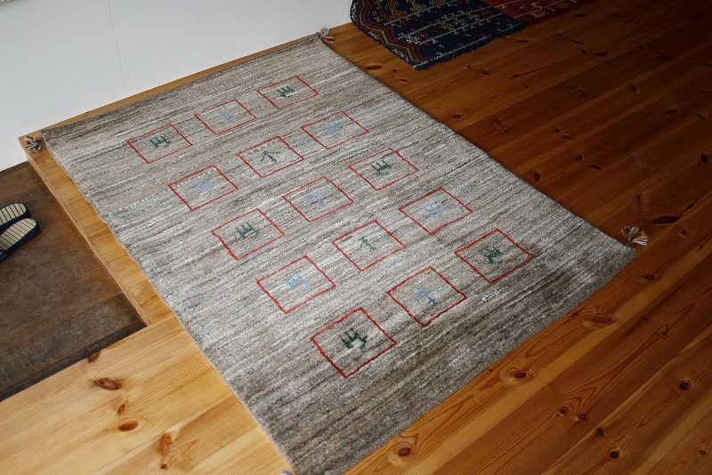 igm176手織り-手紡-草木染め,ギャッベ絨毯とは、イランの遊牧民の女性たちが織るウール100%の手織りの草木染絨毯です。ギャッベ(Gabbeh)は2センチ約の長い毛足を持つ分厚い絨毯のことを指します。100%天然素材ですので、べとつくことなくサラッとし、1年を通して使っていただけます。こちらのサイズは、玄関マットや、ベットの脇や、ソファーの前など、幅広く使っていただけます。