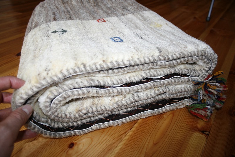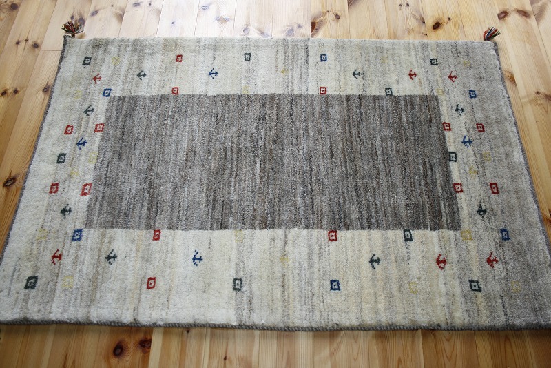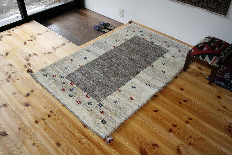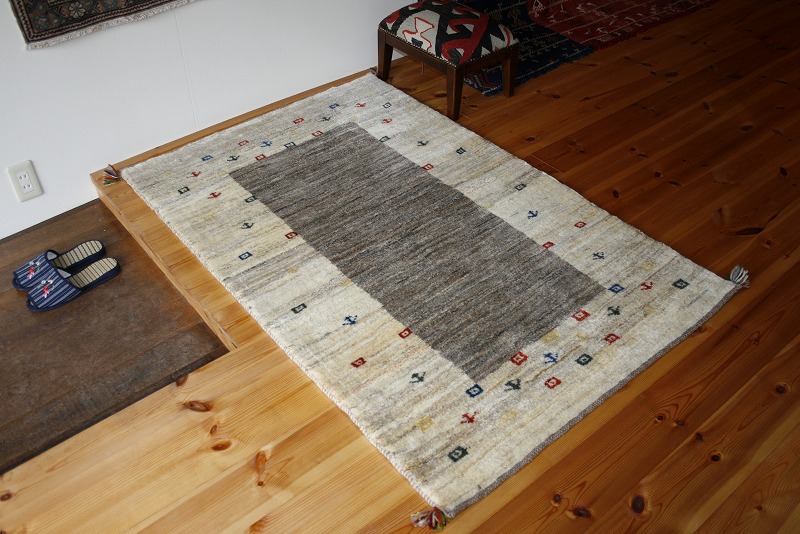 igm184手織り-手紡-草木染め,ギャッベ絨毯とは、イランの遊牧民の女性たちが織るウール100%の手織りの草木染絨毯です。ギャッベ(Gabbeh)は2センチ約の長い毛足を持つ分厚い絨毯のことを指します。100%天然素材ですので、べとつくことなくサラッとし、1年を通して使っていただけます。こちらのサイズは、玄関マットや、ベットの脇や、ソファーの前など、幅広く使っていただけます。