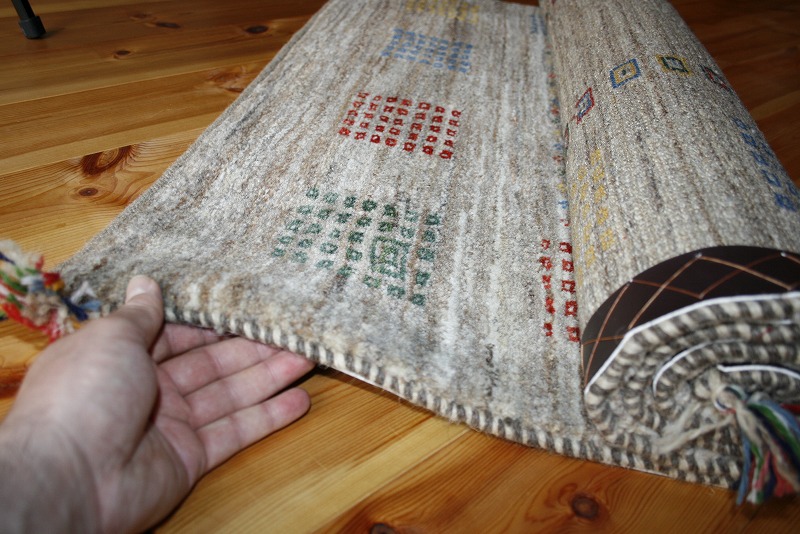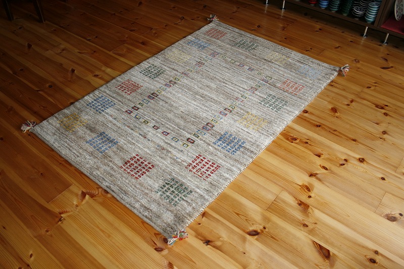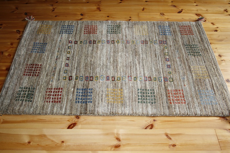 igm185手織り-手紡-草木染め,ギャッベ絨毯とは、イランの遊牧民の女性たちが織るウール100%の手織りの草木染絨毯です。ギャッベ(Gabbeh)は2センチ約の長い毛足を持つ分厚い絨毯のことを指します。100%天然素材ですので、べとつくことなくサラッとし、1年を通して使っていただけます。こちらのサイズは、玄関マットや、ベットの脇や、ソファーの前など、幅広く使っていただけます。