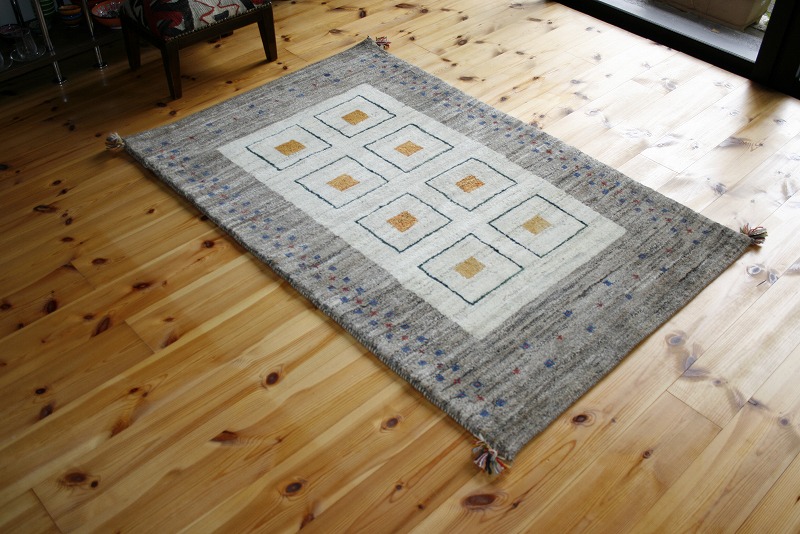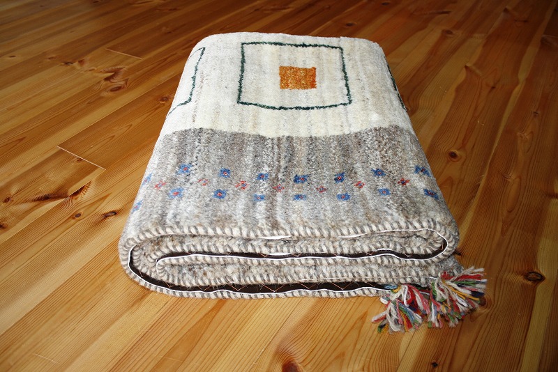 igm186手織り-手紡-草木染め,ギャッベ絨毯とは、イランの遊牧民の女性たちが織るウール100%の手織りの草木染絨毯です。ギャッベ(Gabbeh)は2センチ約の長い毛足を持つ分厚い絨毯のことを指します。100%天然素材ですので、べとつくことなくサラッとし、1年を通して使っていただけます。こちらのサイズは、玄関マットや、ベットの脇や、ソファーの前など、幅広く使っていただけます。