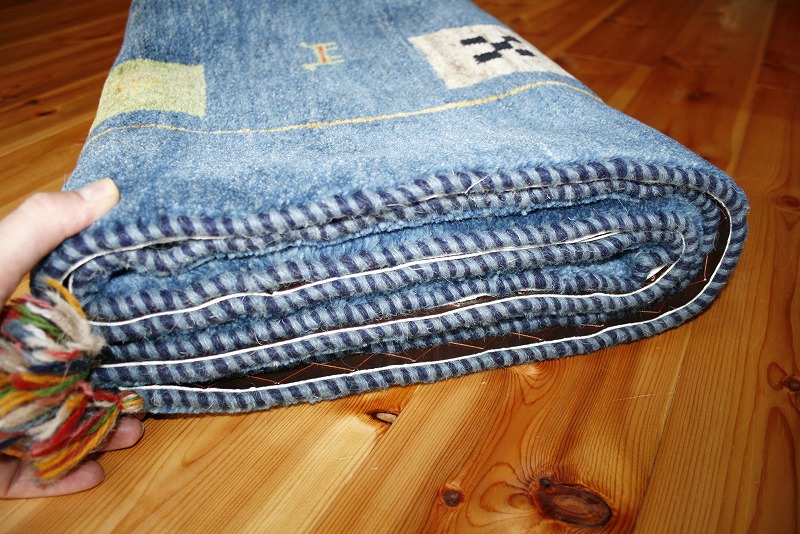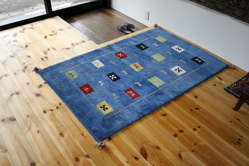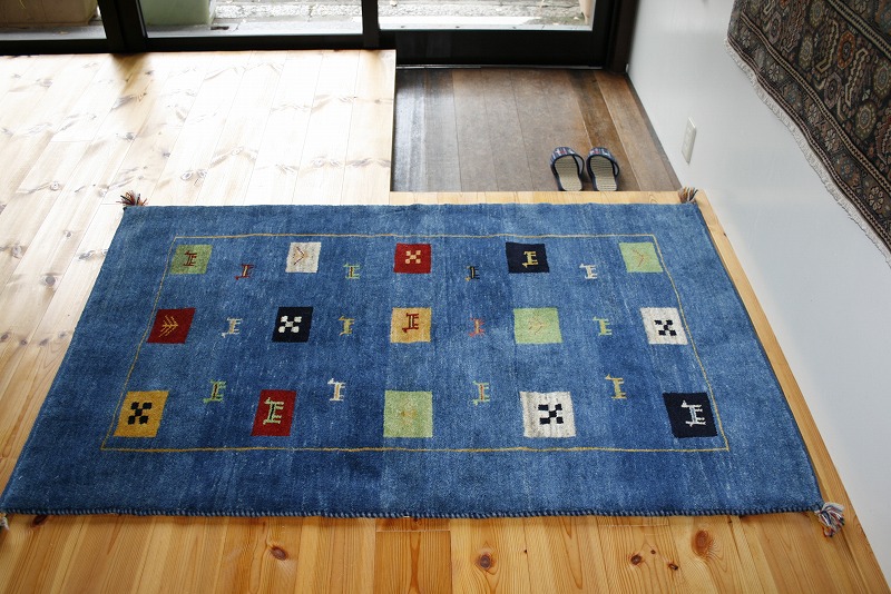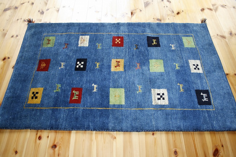 igm193手織り-手紡-草木染め,ギャッベ絨毯とは、イランの遊牧民の女性たちが織るウール100%の手織りの草木染絨毯です。ギャッベ(Gabbeh)は2センチ約の長い毛足を持つ分厚い絨毯のことを指します。100%天然素材ですので、べとつくことなくサラッとし、1年を通して使っていただけます。こちらのサイズは、玄関マットや、ベットの脇や、ソファーの前など、幅広く使っていただけます。
