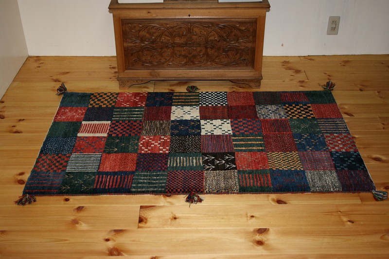 こちらのギャッベは通常のギャッベよりも目が細かく、触れるときゅっと詰まった丁寧な仕上りで数少ない逸品、ファインギャッベです。