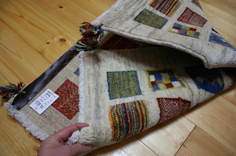 こちらのギャッベは通常のギャッベよりも目が細かく、触れるときゅっと詰まった丁寧な仕上りで数少ない逸品、ファインギャッベです。