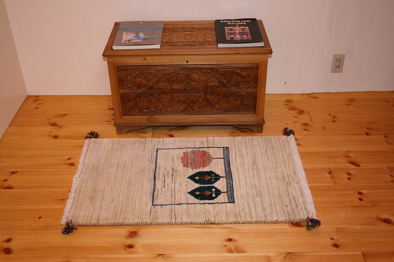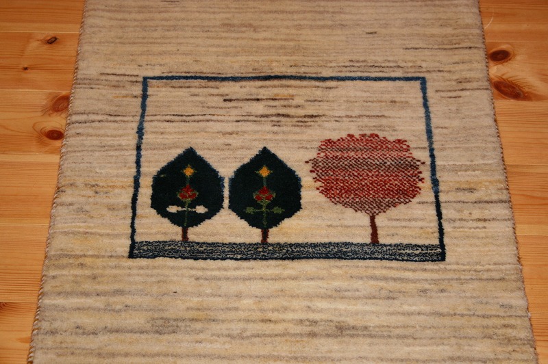 こちらのギャッベは通常のギャッベよりも目が細かく、触れるときゅっと詰まった丁寧な仕上りで数少ない逸品、ファインギャッベです。