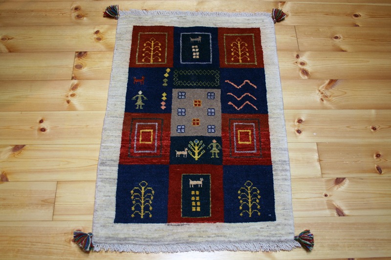 こちらのギャッベは通常のギャッベよりも目が細かく、触れるときゅっと詰まった丁寧な仕上りで数少ない逸品、ファインギャッベです。
