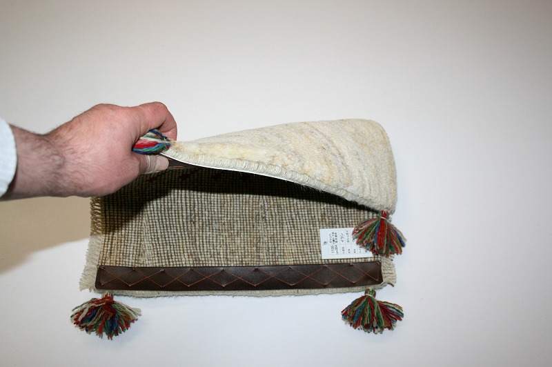 手織り-手紡-草木染め,ギャッベ絨毯とは、イランの遊牧民の女性たちが織るウール100%の手織りの草木染絨毯です。ギャッベ(Gabbeh)は2センチ約の長い毛足を持つ分厚い絨毯のことを指します。100%天然素材ですので、べとつくことなくサラッとし、1年を通して使っていただけます。40cm角のミニサイズは、玄関、ダイニングや普段座る椅子、車の座席の座布団代わりにおすすめです。手織りならではの一枚一枚違った感触をお楽しみください。