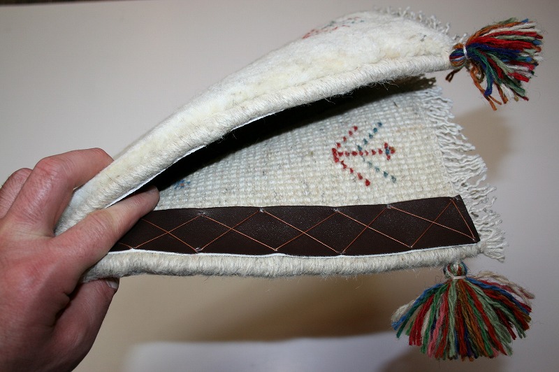 ●サイズ: 縦40cm×横44cm ●素材 ウール(手紬で手織り)●厚みは2㎝前後です。