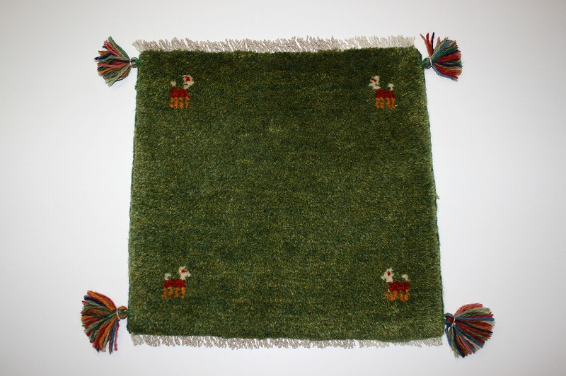 手織り-手紡-草木染め,ギャッベ絨毯とは、イランの遊牧民の女性たちが織るウール100%の手織りの草木染絨毯です。ギャッベ(Gabbeh)は2センチ約の長い毛足を持つ分厚い絨毯のことを指します。100%天然素材ですので、べとつくことなくサラッとし、1年を通して使っていただけます。40cm角のミニサイズは、玄関、ダイニングや普段座る椅子、車の座席の座布団代わりにおすすめです。手織りならではの一枚一枚違った感触をお楽しみください。