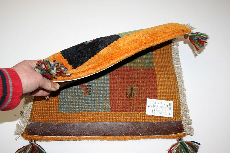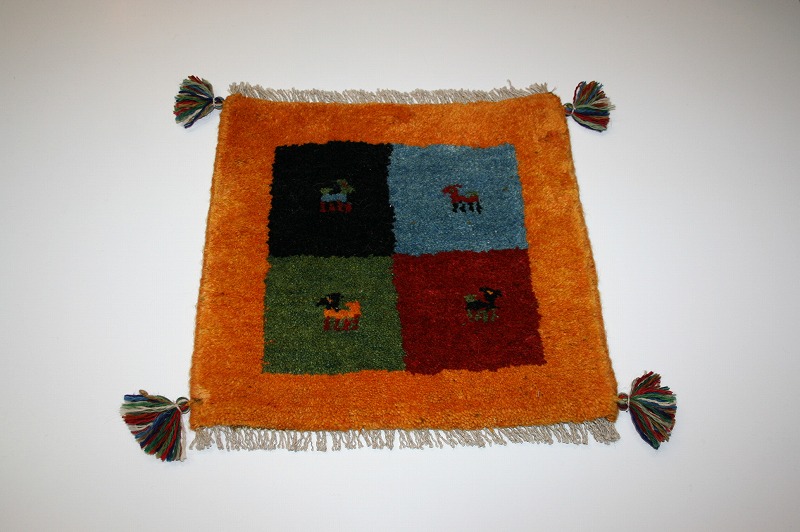 手織り-手紡-草木染め,ギャッベ絨毯とは、イランの遊牧民の女性たちが織るウール100%の手織りの草木染絨毯です。ギャッベ(Gabbeh)は2センチ約の長い毛足を持つ分厚い絨毯のことを指します。100%天然素材ですので、べとつくことなくサラッとし、1年を通して使っていただけます。40cm角のミニサイズは、玄関、ダイニングや普段座る椅子、車の座席の座布団代わりにおすすめです。手織りならではの一枚一枚違った感触をお楽しみください。
