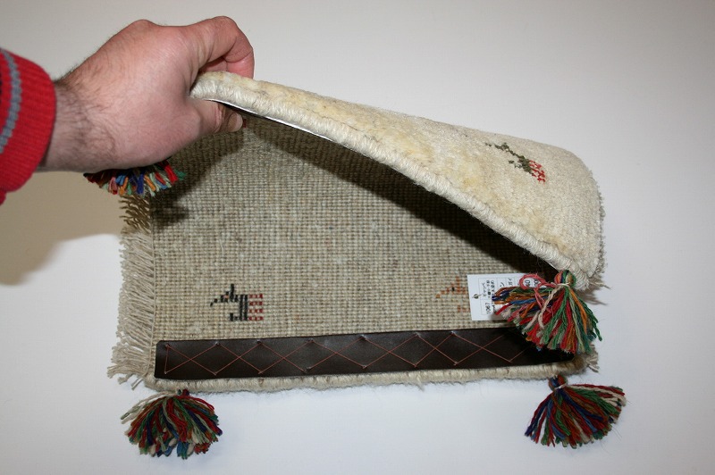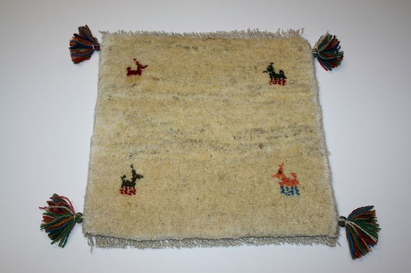 手織り-手紡-草木染め,ギャッベ絨毯とは、イランの遊牧民の女性たちが織るウール100%の手織りの草木染絨毯です。ギャッベ(Gabbeh)は2センチ約の長い毛足を持つ分厚い絨毯のことを指します。100%天然素材ですので、べとつくことなくサラッとし、1年を通して使っていただけます。40cm角のミニサイズは、玄関、ダイニングや普段座る椅子、車の座席の座布団代わりにおすすめです。手織りならではの一枚一枚違った感触をお楽しみください。