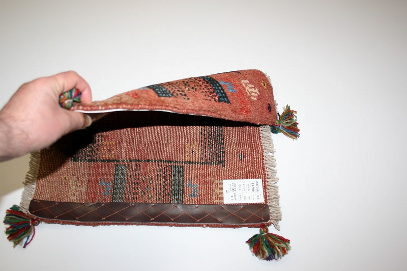 手織り-手紡-草木染め,ギャッベ絨毯とは、イランの遊牧民の女性たちが織るウール100%の手織りの草木染絨毯です。ギャッベ(Gabbeh)は2センチ約の長い毛足を持つ分厚い絨毯のことを指します。100%天然素材ですので、べとつくことなくサラッとし、1年を通して使っていただけます。40cm角のミニサイズは、玄関、ダイニングや普段座る椅子、車の座席の座布団代わりにおすすめです。手織りならではの一枚一枚違った感触をお楽しみください。