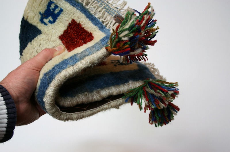 手織り-手紡-草木染め,ギャッベ絨毯とは、イランの遊牧民の女性たちが織るウール100%の手織りの草木染絨毯です。ギャッベ(Gabbeh)は2センチ約の長い毛足を持つ分厚い絨毯のことを指します。100%天然素材ですので、べとつくことなくサラッとし、1年を通して使っていただけます。40cm角のミニサイズは、玄関、ダイニングや普段座る椅子、車の座席の座布団代わりにおすすめです。手織りならではの一枚一枚違った感触をお楽しみください。