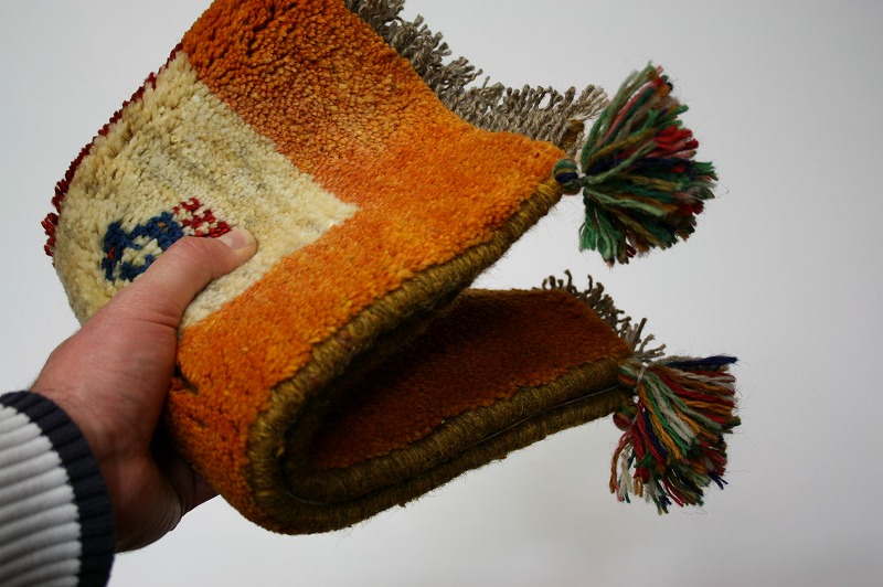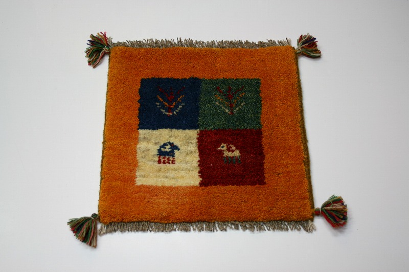 手織り-手紡-草木染め,ギャッベ絨毯とは、イランの遊牧民の女性たちが織るウール100%の手織りの草木染絨毯です。ギャッベ(Gabbeh)は2センチ約の長い毛足を持つ分厚い絨毯のことを指します。100%天然素材ですので、べとつくことなくサラッとし、1年を通して使っていただけます。40cm角のミニサイズは、玄関、ダイニングや普段座る椅子、車の座席の座布団代わりにおすすめです。手織りならではの一枚一枚違った感触をお楽しみください。
