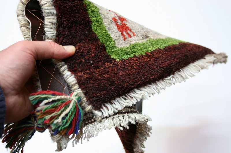 手織り-手紡-草木染め,ギャッベ絨毯とは、イランの遊牧民の女性たちが織るウール100%の手織りの草木染絨毯です。ギャッベ(Gabbeh)は2センチ約の長い毛足を持つ分厚い絨毯のことを指します。100%天然素材ですので、べとつくことなくサラッとし、1年を通して使っていただけます。40cm角のミニサイズは、玄関、ダイニングや普段座る椅子、車の座席の座布団代わりにおすすめです。手織りならではの一枚一枚違った感触をお楽しみください。