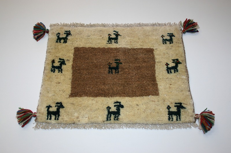 手織り-手紡-草木染め,ギャッベ絨毯とは、イランの遊牧民の女性たちが織るウール100%の手織りの草木染絨毯です。ギャッベ(Gabbeh)は2センチ約の長い毛足を持つ分厚い絨毯のことを指します。100%天然素材ですので、べとつくことなくサラッとし、1年を通して使っていただけます。40cm角のミニサイズは、玄関、ダイニングや普段座る椅子、車の座席の座布団代わりにおすすめです。手織りならではの一枚一枚違った感触をお楽しみください。
