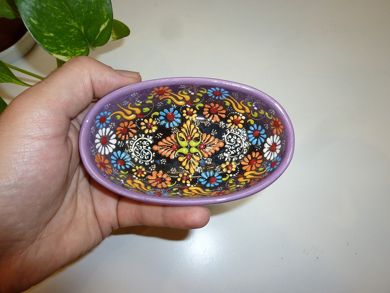 陶器で知られる町,トルコのキュタフヤで作られた、手描きの小物入れです。