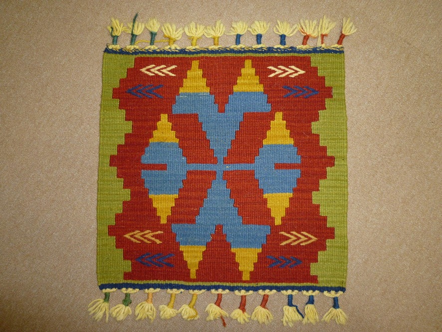 ニューキリム(新品)です。トルコのカイセリという町で作られたものです。カイセリキリムの特徴は手触りが柔らかいこと!小さなキリムなので、テーブルの上や壁に飾るなど、お部屋のアクセントにいかがですか。機械織りとは異なり、暖かみが伝わるハンドメイド。
