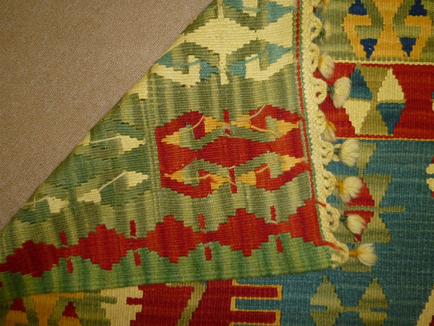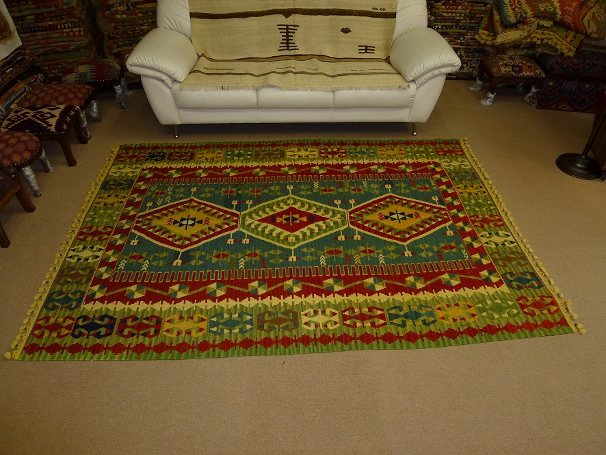 【新品】ニューカイセリキリムです。トルコのカイセリという町で作られたものです。カイセリキリムの特徴は手触りが柔らかいこと!ソファーの前やテーブルの下、リビングなどにいかがでしょうか。機械織りとは異なり、暖かみが伝わるハンドメイド。このタイプのものは、なかなか数が少なく、品質・価格・品揃え共に、日本国内屈指で あると自負しています。