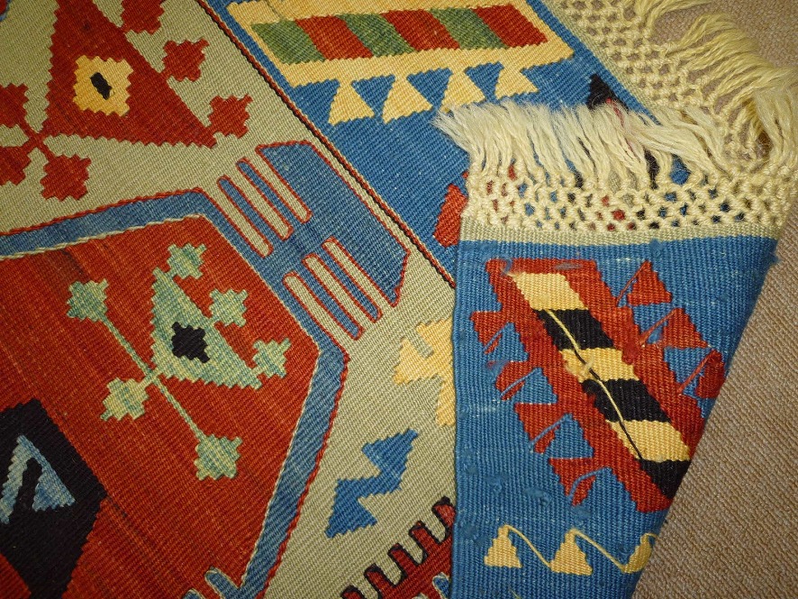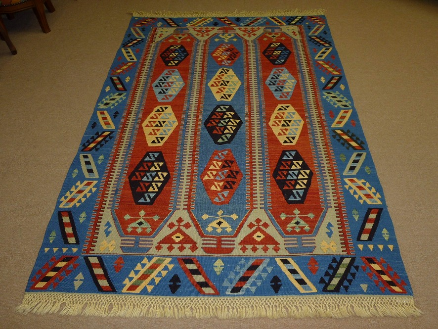 スタンダードキリムより、ワンランク上のカイセリキリム。カイセリ地方で織られているキリムです。上質のウールで織られているため、手触りもやわらか。細かなモチーフがぎっしり詰め込まれ、繊細に織られていて、古いキリムの色合いに合わせたパステル調の色合いが特徴です。機械織りとは異なり、暖かみが伝わるハンドメイド。このタイプのものは、なかなか数が少なく、品質・価格・品揃え共に、日本国内屈指であると自負しています。