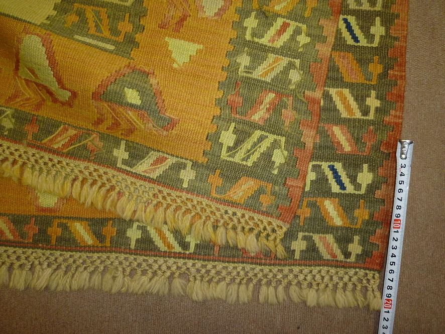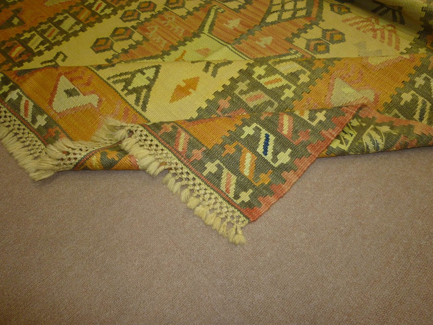 スタンダードキリムより、ワンランク上のカイセリキリム。カイセリ地方で織られているキリムです。上質のウールで織られているため、手触りもやわらか。細かなモチーフがぎっしり詰め込まれ、繊細に織られていて、古いキリムの色合いに合わせたパステル調の色合いが特徴です。機械織りとは異なり、暖かみが伝わるハンドメイド。このタイプのものは、なかなか数が少なく、品質・価格・品揃え共に、日本国内屈指であると自負しています。