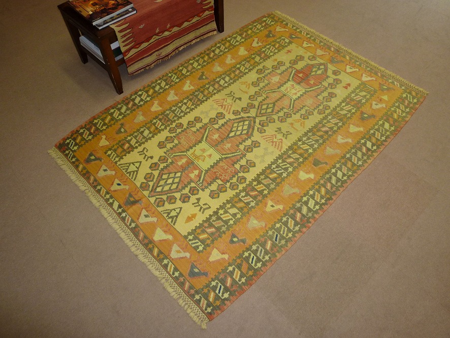 ●サイズ:縦180×横130(cm)  ●材質 ウール×ウール  ●年 代:新しいキリム ●産地:トルコ/カイセリ