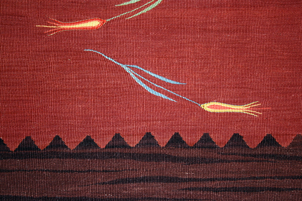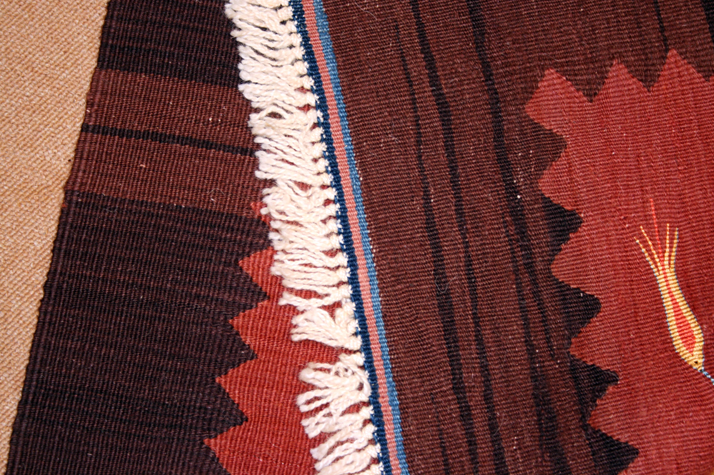 ニューキリム(新品)です。使いこむほどに風合いを重ね、アンティーク感が出てくるのがキリムの醍醐味。本キリムに使用の糸は、手紡ぎ・草木染めです。ハンドメイドならではの素朴な味わいと、柔らかい手触り。「機械織りでは味わえない暖かみ」をお楽しみ頂ける逸品です。