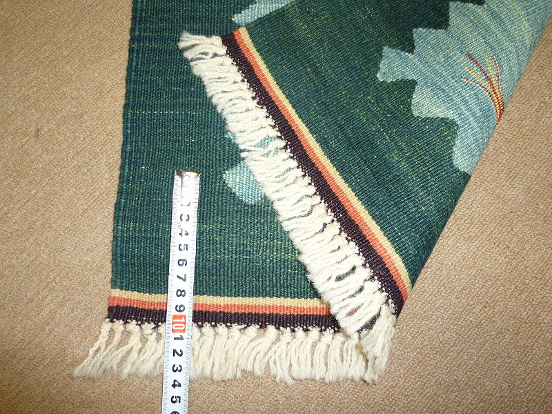 ニューキリム(新品)です。使いこむほどに風合いを重ね、アンティーク感が出てくるのがキリムの醍醐味。本キリムに使用の糸は、手紡ぎ・草木染めです。ハンドメイドならではの素朴な味わいと、柔らかい手触り。「機械織りでは味わえない暖かみ」をお楽しみ頂ける逸品です。