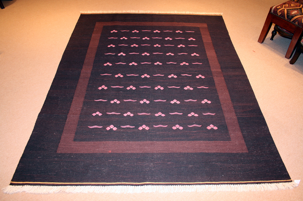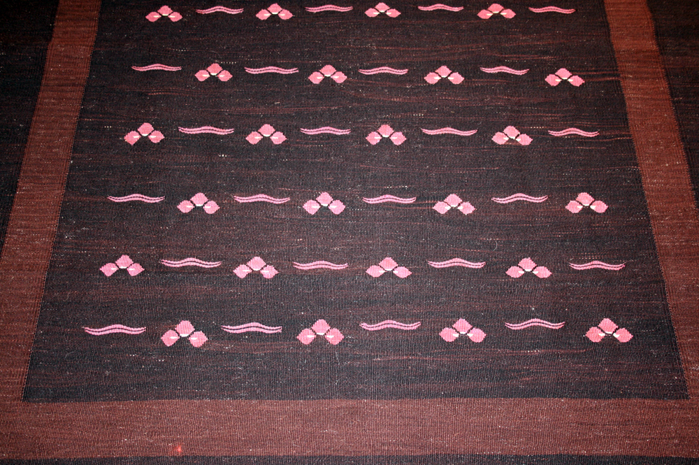 ニューキリム(新品)です。使いこむほどに風合いを重ね、アンティーク感が出てくるのがキリムの醍醐味。本キリムに使用の糸は、手紡ぎ・草木染めです。ハンドメイドならではの素朴な味わいと、柔らかい手触り。「機械織りでは味わえない暖かみ」をお楽しみ頂ける逸品です。