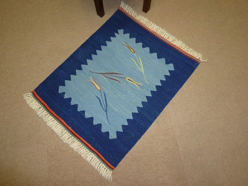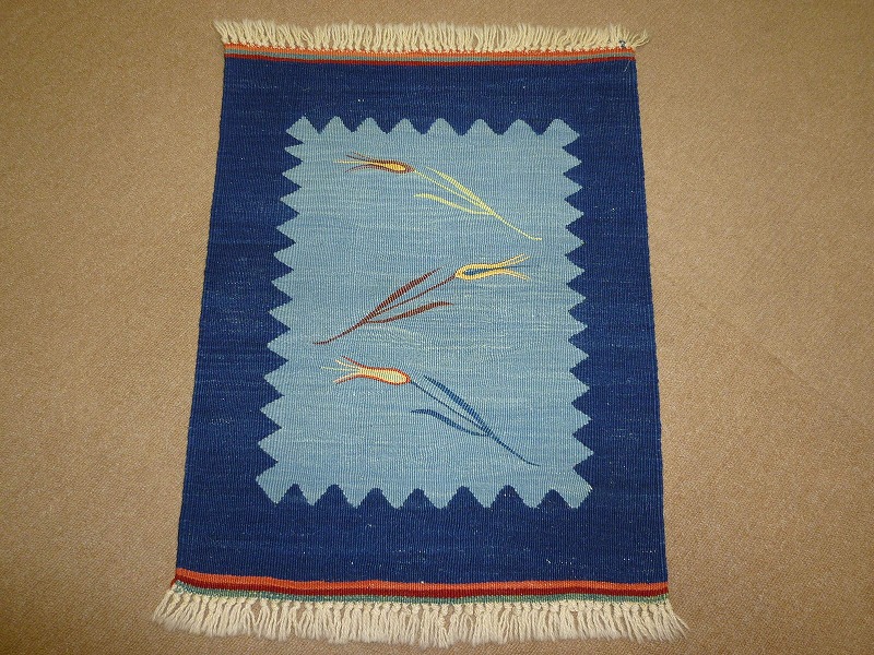 ニューキリム(新品)です。使いこむほどに風合いを重ね、アンティーク感が出てくるのがキリムの醍醐味。本キリムに使用の糸は、手紡ぎ・草木染めです。ハンドメイドならではの素朴な味わいと、柔らかい手触り。「機械織りでは味わえない暖かみ」をお楽しみ頂ける逸品です。