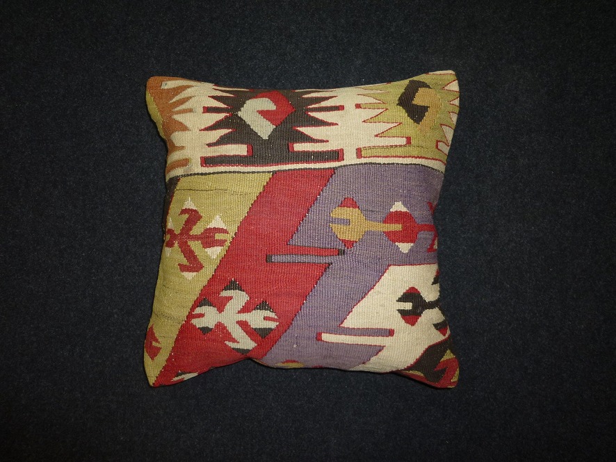 キリムクッションカバー[m-131] オールドキリムを使用して作られた、エキゾチックなクッションカバー。オールドキリムの素敵な部分をカットして使用されています。(表面はオールドキリム、裏側はコットンの布地です)お手持ちの家具やキリムと組み合わせてお楽しみください。このタイプのものは、なかなか数が少な く、品質・価格・品揃え共に日本国内屈指であると自負しています。この商品は現地でクリーニングしてから輸入していますのでご安心ください。この商品は現地でクリーニングしてから輸入していますのでご安心ください。