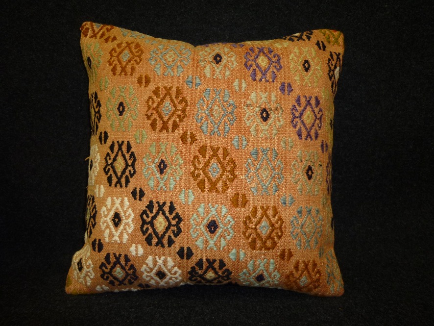 キリムクッションカバー[m18] オールドキリムを使用して作られた、エキゾチックなクッションカバー。オールドキリムの素敵な部分をカットして使用されています。(表面はオールドキリム、裏側はコットンの布地です)お手持ちの家具やキリムと組み合わせてお楽しみください。このタイプのものは、なかなか数が少な く、品質・価格・品揃え共に日本国内屈指であると自負しています。この商品は現地でクリーニングしてから輸入していますのでご安心ください。