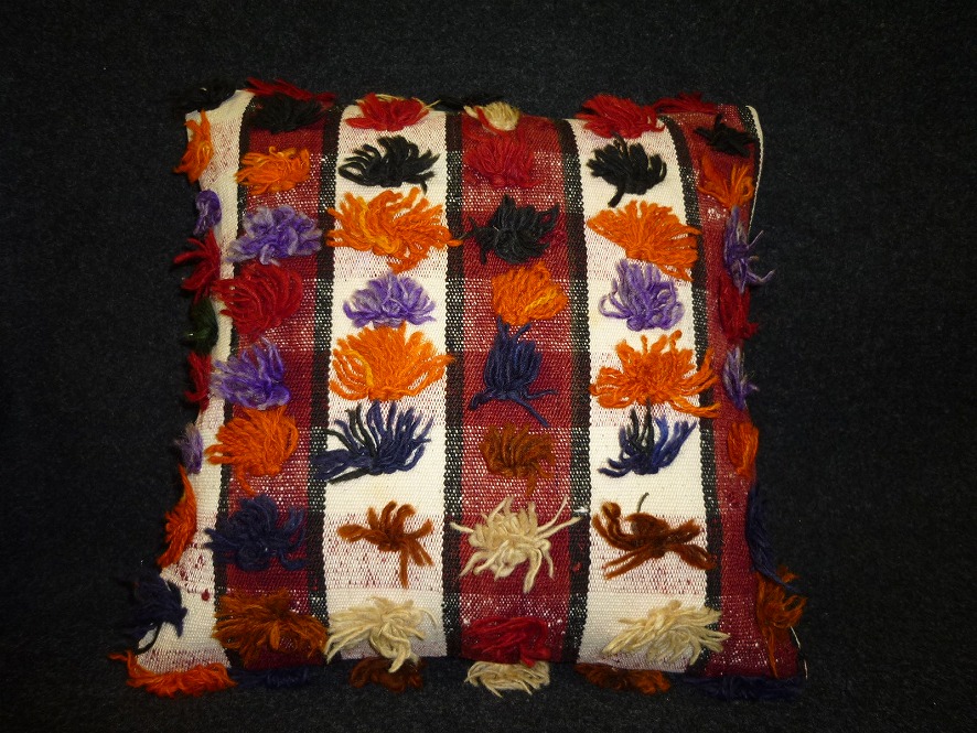 キリムクッションカバー[m39] オールドキリムを使用して作られた、エキゾチックなクッションカバー。オールドキリムの素敵な部分をカットして使用されています。(表面はオールドキリム、裏側はコットンの布地です)お手持ちの家具やキリムと組み合わせてお楽しみください。このタイプのものは、なかなか数が少な く、品質・価格・品揃え共に日本国内屈指であると自負しています。この商品は現地でクリーニングしてから輸入していますのでご安心ください。