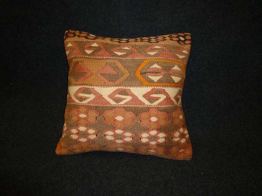 オールドキリムを使用して作られた、エキゾチックなクッションカバー。オールドキリムの素敵な部分をカットして使用されています。(表面はオールドキリム、裏側はコットンの布地です)お手持ちの家具やキリムと組み合わせてお楽しみください。このタイプのものは、なかなか数が少な く、品質・価格・品揃え共に日本国内屈指であると自負しています。この商品は現地でクリーニングしてから輸入していますのでご安心ください。
