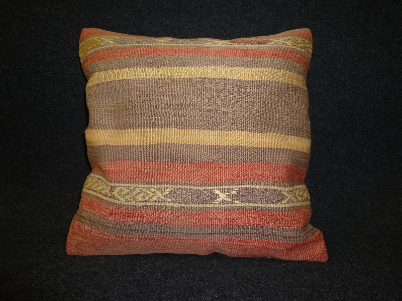 キリムクッションカバー[m-600] オールドキリムを使用して作られた、エキゾチックなクッションカバー。オールドキリムの素敵な部分をカットして使用されています。(表面はオールドキリム、裏側はコットンの布地です)お手持ちの家具やキリムと組み合わせてお楽しみください。このタイプのものは、なかなか数が少な く、品質・価格・品揃え共に日本国内屈指であると自負しています。この商品は現地でクリーニングしてから輸入していますのでご安心ください。