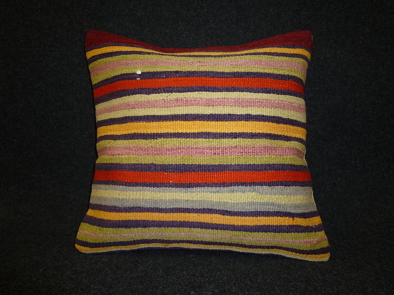 キリムクッションカバー[m-612] オールドキリムを使用して作られた、エキゾチックなクッションカバー。オールドキリムの素敵な部分をカットして使用されています。(表面はオールドキリム、裏側はコットンの布地です)お手持ちの家具やキリムと組み合わせてお楽しみください。このタイプのものは、なかなか数が少な く、品質・価格・品揃え共に日本国内屈指であると自負しています。この商品は現地でクリーニングしてから輸入していますのでご安心ください。