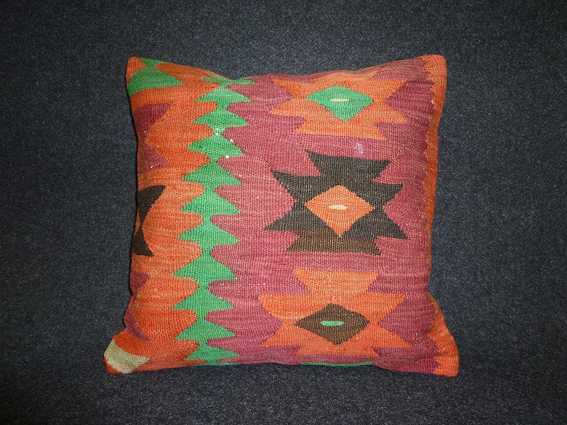 キリムクッションカバー[m-637] オールドキリムを使用して作られた、エキゾチックなクッションカバー。オールドキリムの素敵な部分をカットして使用されています。(表面はオールドキリム、裏側はコットンの布地です)お手持ちの家具やキリムと組み合わせてお楽しみください。このタイプのものは、なかなか数が少な く、品質・価格・品揃え共に日本国内屈指であると自負しています。この商品は現地でクリーニングしてから輸入していますのでご安心ください。