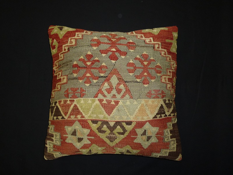 キリムクッションカバー[m701] オールドキリムを使用して作られた、エキゾチックなクッションカバー。オールドキリムの素敵な部分をカットして使用されています。(表面はオールドキリム、裏側はコットンの布地です)お手持ちの家具やキリムと組み合わせてお楽しみください。このタイプのものは、なかなか数が少な く、品質・価格・品揃え共に日本国内屈指であると自負しています。この商品は現地でクリーニングしてから輸入していますのでご安心ください。
