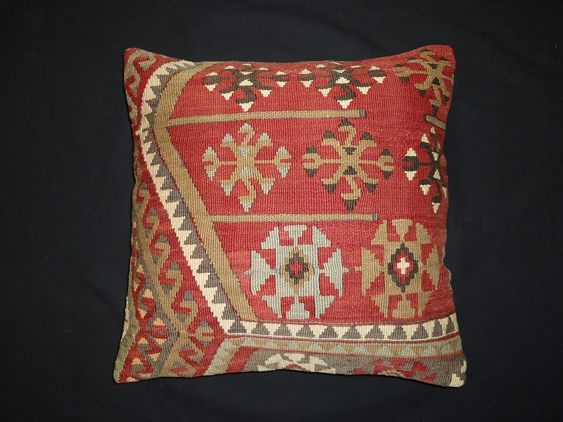 キリムクッションカバー[m731] オールドキリムを使用して作られた、エキゾチックなクッションカバー。オールドキリムの素敵な部分をカットして使用されています。(表面はオールドキリム、裏側はコットンの布地です)お手持ちの家具やキリムと組み合わせてお楽しみください。このタイプのものは、なかなか数が少な く、品質・価格・品揃え共に日本国内屈指であると自負しています。この商品は現地でクリーニングしてから輸入していますのでご安心ください。