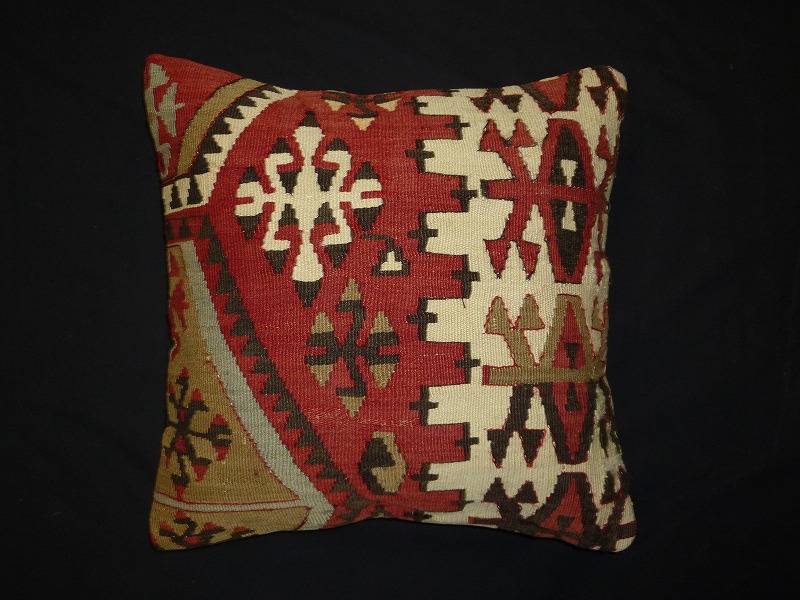 キリムクッションカバー[m746] オールドキリムを使用して作られた、エキゾチックなクッションカバー。オールドキリムの素敵な部分をカットして使用されています。(表面はオールドキリム、裏側はコットンの布地です)お手持ちの家具やキリムと組み合わせてお楽しみください。このタイプのものは、なかなか数が少な く、品質・価格・品揃え共に日本国内屈指であると自負しています。この商品は現地でクリーニングしてから輸入していますのでご安心ください。
